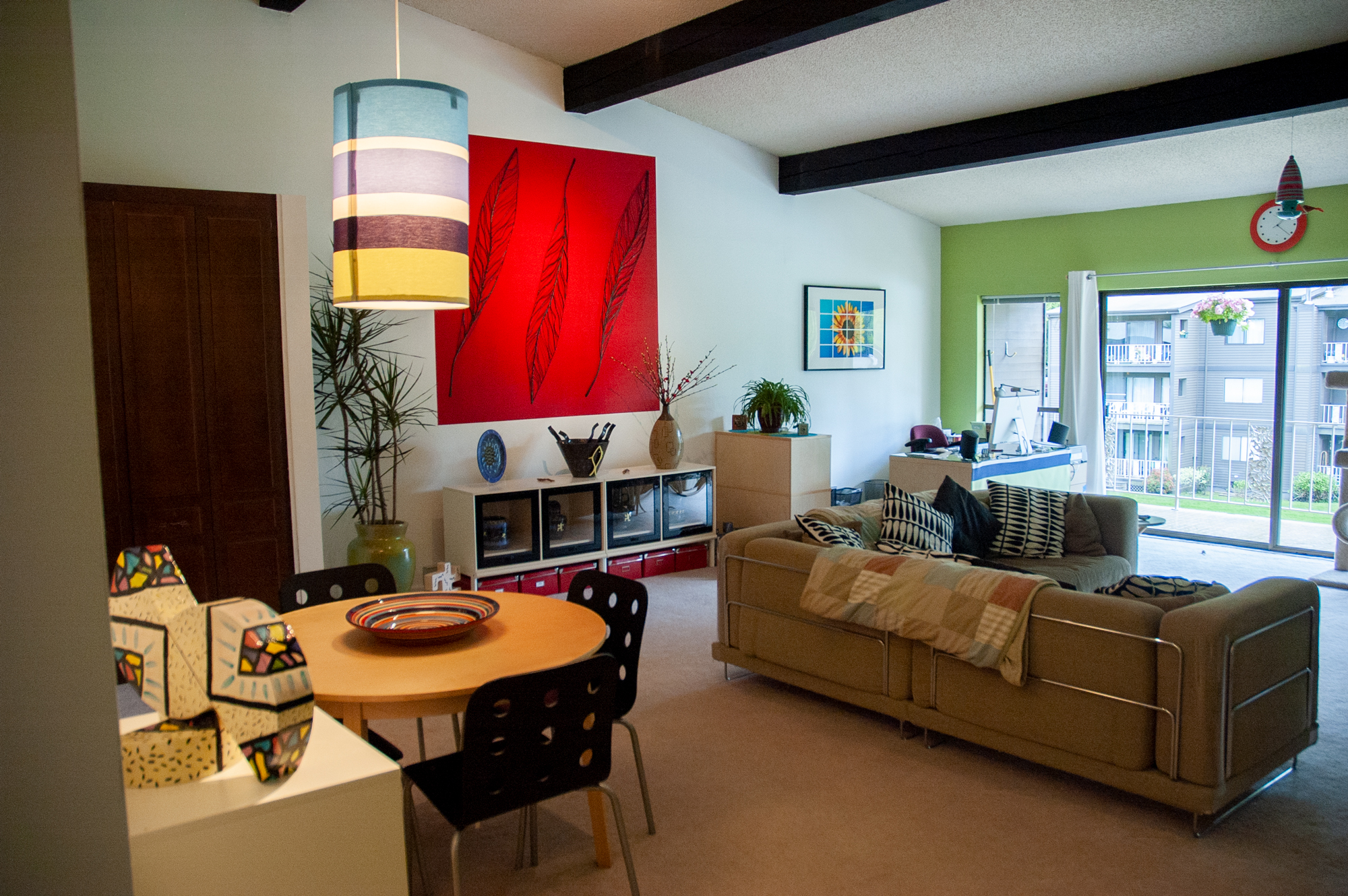 After closing we were able to start prepping the condo to be inhabited. I started painting walls and getting utilities and new appliances delivered & set up. It seemed all so whirlwind … but it was happening! Yippee! The pictures you will see are after a few months of living here. The decoration and styling were done by Chris & me. It was so much fun to pull it all together, and so rewarding. Oh … and the cats love it too! Welcome to our new home.