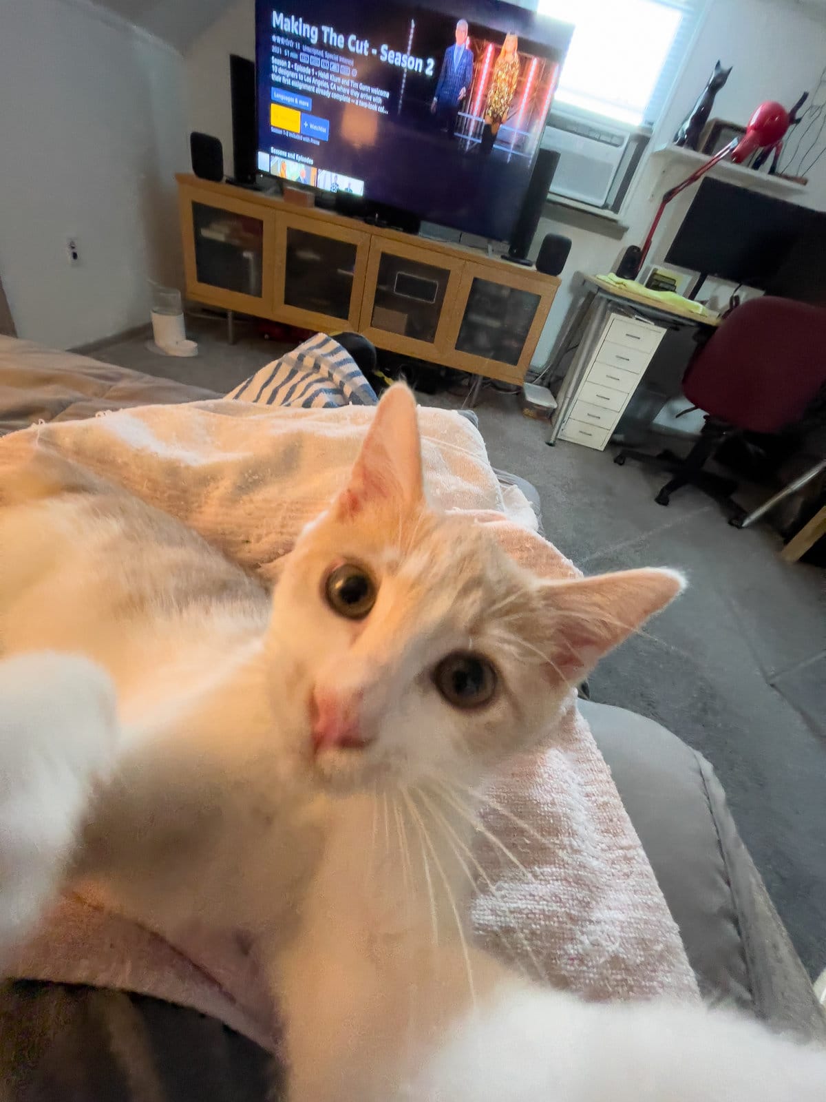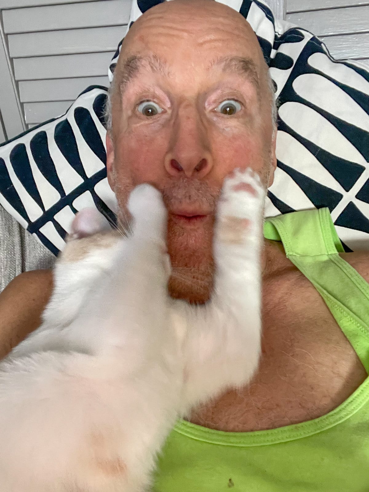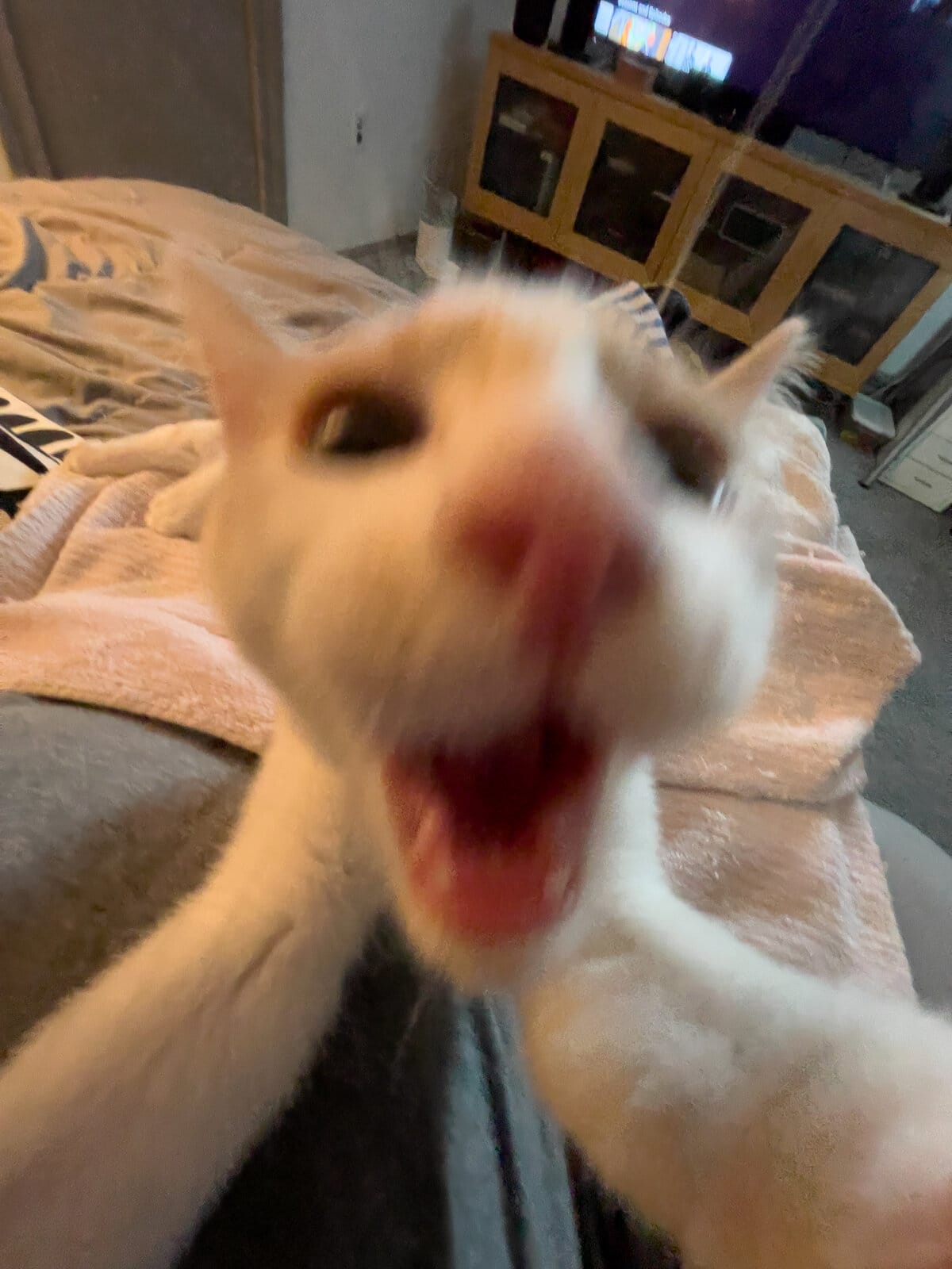 The morning of July 22nd I was awoken at around 4:00 AM by Rudie jumping on the bed and him pushing his fur ball head between my neck and chin to cuddle, get pets, and purr up a storm. It’s his ritual. Around 5:00 AM Rocco decided he needed some snuggling of his own and jumped on the bed too. All well and good. When the snuggling stops the play fighting begins and continues most times on the bed, and I eventually must get up. On this particular morning I picked up one of them, I won ‘t name names, to bring him to my face for a little cuddle—like I’ve done countless times before. Though on this particular morning, this nameless rude boy, just pulled back his paw & with only his paw pad, nails retracted, bopped me in my fully opened left eye! WTF just happened!!!???