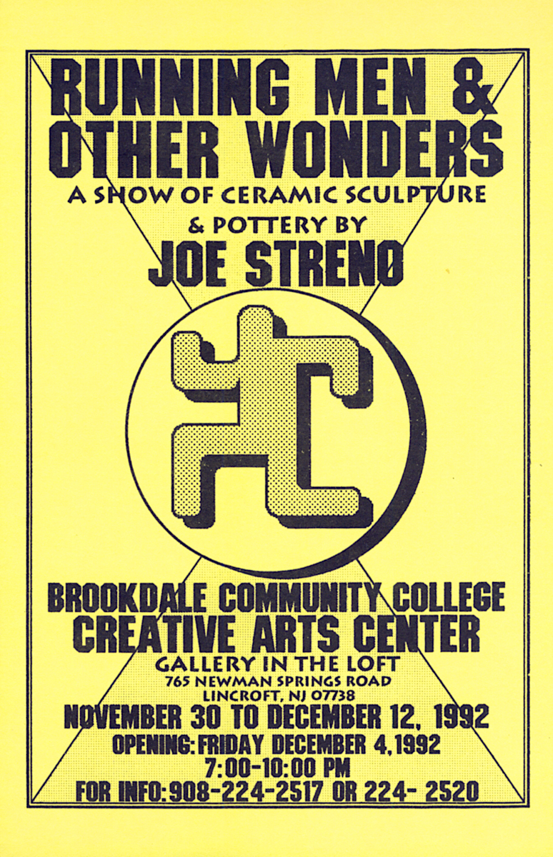 Shortly after leaving MacWarehouse I was able to go on unemployment. While I was happily unemployed, I became a full time “art student” at Brookdale Community College. One of the classes I took, and excelled in, was ceramic art. Like my music, I used my Mac along with clay to make new art. It just seemed natural. The Mac was just another tool of creation. I would make designs in MacPaint, print them, cut them out, and use those as slip resist decoration on my vessel forms. One of those designs was  taken straight out of the Mac Scrapbook. This was what I called The Running Man.