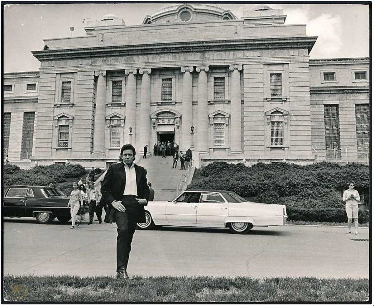Johnny Cash outside Leavenworth Penitentiary