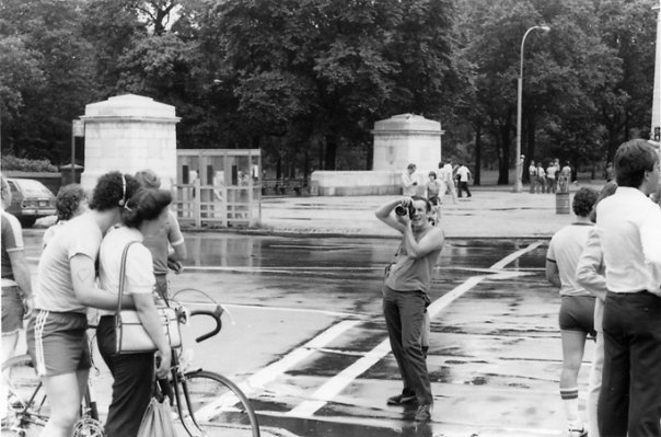 As we walked around I had taken some candid photos of people wearing Walkmans. We also walked the outskirts of Central Park, where I chatted up a guy on his bike (wearing a Walkman) with his girl, and asked if I could photograph them. It was sweet. Wish I knew who they were. I may or may not have gotten their info at the time. And little did I know until many years later, John photographed me taking the phots of this couple.