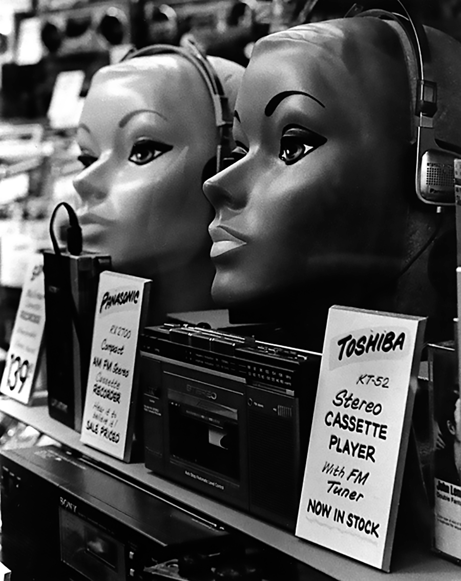 But one of my F. A. V. E. photos was of mannequin heads in a discount electronics store. It was perfect! Even if I do say so myself. Even though the original photo was in black and white, there was something futuristic and telling about these chiseled featured, starkly made up, heads. I still love this photo even today. I think it was the impetus to my life-long fascination with mannequins in store windows. I’ve shot quite a few in my time, and still do.